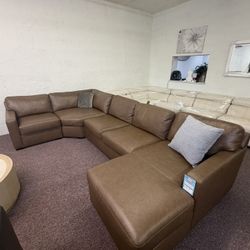 Furniture- Butternut 100% Real Top Grain Leather 5 Pc Sectional With 3 Power Recliners- Nevio $2,699Menifee, CA