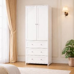 Closet with Drawers and Mirror, 71" Clothing Storage Cabinet with Hanging Rod, 2 Doors Wooden Wardrobe Cabinet for Bedroom, Large Capacity Storage$115Fontana, CA