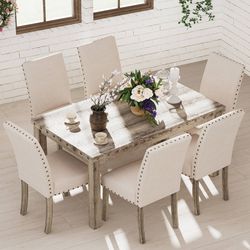 7 Pieces Wooden Dining Table Set Rustic Rectangle Table and Upholstered Chair for Kitchen, Restaurant$570Riverside, CA