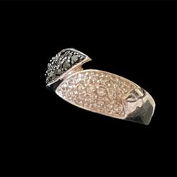 Vintage Black & Silver tone CZ Silver Bypass Ring -9.5 costume jewelry $7Rialto, CA