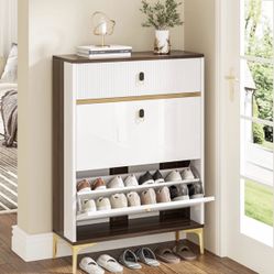 Fluted Shoe Cabinet Storage for Entryway with 3 Flip Drawers, Hidden Shoes Storage Cabinet, Narrow Shoe Rack Cabinet, Freestanding Slim Shoe Organize$100Upland, CA