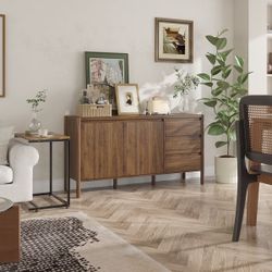 Buffet Cabinet with 3 Drawers and 4 Doors, 55.1” W Kitchen Sideboard Storage Cabinet with Adjustable Shelves, Farmhouse Coffee Bar Cabinet$130Montclair, CA