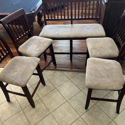 4 Wooden Bar Height Chairs And Bar Height Bench$300Beaumont, CA