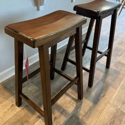 Two bar stools, bar stools Upholstered with counter height, modern stools with Wooden legs for kitchen, dining island, bar, brown color$150Rialto, CA