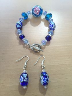 Lamp Work Blue Flower Bracelet Earrings Set$15San Jose, CA