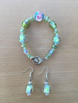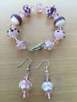 Lamp Work Pink Mix Flowers Bracelet Earrings Set$15San Jose, CA