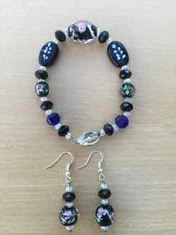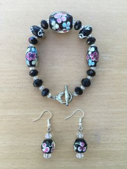Lamp Work Black Flower Bracelet Earrings Set$15San Jose, CA