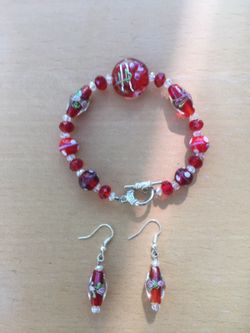 Lamp Work Ruby Flower Bracelet Earrings Set$15San Jose, CA