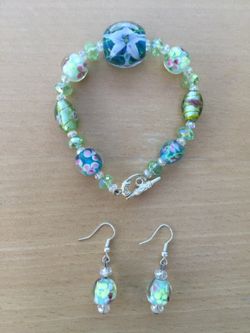 Lamp Work Aqua Flower Bracelet/Earrings Set$15San Jose, CA