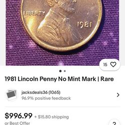 Rare 1981 NO MINT Penny$595San Jose, CA