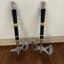 Pair Of Decorative Medieval Double Headed Axes With Black And Gold Handles $50Santa Cruz, CA