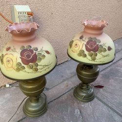 . Beautiful VINTAGE RARE FENTON T.F. B. GLASS PUFFY ROSES WHITE PINK LAMP Brass Electric Lights Up Top And Bottom. Works.$648Mountain View, CA