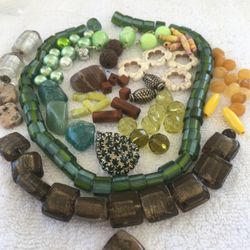 10 oz. Bag Of Mixed Green, Brown Jewelry Beads Plus Agate Pendant $25San Jose, CA