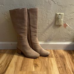 Latte Lucky Brand Leather peep toe boots$40San Jose, CA