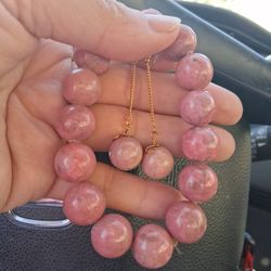 14mm Genuine Pink Rhodolite Gemsstone Stretchy Bracelet And Gpd Gldangle Earings 2" Set $50San Jose, CA