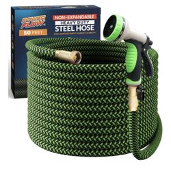 PowerFlow Garden Hose, NON-EXPANDABLE 50 Feet Premium Quality Stainless Steel Metal Water Hose with Durable Fabric Skin Bonus 10-way Spray Nozzle$45Alameda, CA