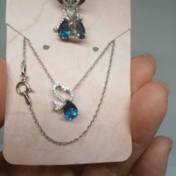 Sét925 Blue Topaz Earings Necklace Pdnt Butterfly Design Dexember Birthstone$50San Jose, CA