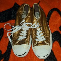 mens Converse Jack Purcell Sneakers Lace Up Low Top - Gold Leather -8-$45San Jose, CA