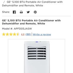 New GE 5,100 BTU Portable Air Conditioner with Dehumidifier and Remote$300Alameda, CA
