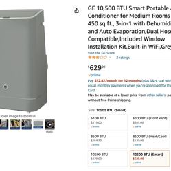✅ 🥶 GE 10,500 BTU Portable Air Conditioner with Dehumidifier and Remote, Grey Built-in WiFi$450San Leandro, CA