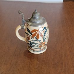 Vintage traditional German ceramic beer stein with pewter lid.