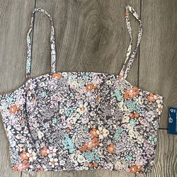NWT Arizona Jean Co Purple Multi Floral Cropped Top Smocked Back Women’s Size XS$12San Leandro, CA