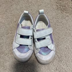 Girl size 10 sneaker purple & white shoes flats for 4-5 years girl little girl running shoes Comes from pet free smoke free. No issue no damage $3Newark, CA