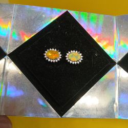 S925 Genuine Fire Opal Play Of Colors Ethiopia CZ Full Flash Stone Size 8x6mm Flat Top Stud Earings$40San Jose, CA