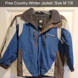 Boys Size 7/8 Medium - Hooded (Removable) Blue w/Cream/Black Jacket$35Los Gatos, CA
