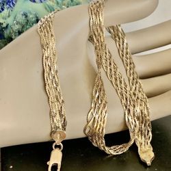 Vintage Gold Vermeil / Sterling Necklace, Italy 925 Woven Braided Herringbone Chain, 18” Excellent Used Condition $87Mountain View, CA