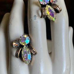 Gorgeous Vintage SCHOFFEL Aurora Borealis Austrian Gold Plated Large & Small light pink Rhinestone Crystals Screw On Earrings$38Mountain View, CA