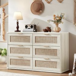 Rattan Dresser Boho 48" Wide White/Grey 6 drawer dresser$140Dublin, CA