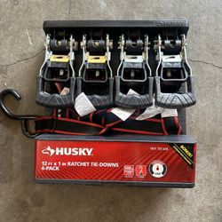 Brand New Husky Tools Ratchet Tie-Down Straps, 1-Inch, 500 lb Working Load, 4-Pack with Storage Bag, Black and Red$8Hayward, CA