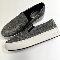 MICHAEL KORS TRENT GLITTER-CHAIN MESH SLIP-ON SNEAKERS BLACK/SILVER 9.5 M NWOB$80Hillsborough, CA