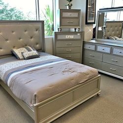 $10 Payment 👌Davi Bedroom Set/Bed/Chest/Dresser/Nightstand/Mirror🛏️4 Piece Price !!!(QB/D/M/N)💒$689San Jose, CA