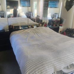 Black Mirrored Headboard With 3 Drawers And Lights$150San Jose, CA
