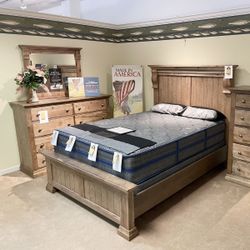 $39 Down Rustic Bedroom Set Queen/King Bed Dresser Nightstand Mirror Total Price $2,296Milpitas, CA