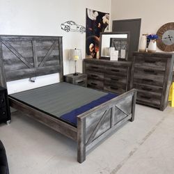 $49 Down Rustic Bedroom Set Queen or King Bed Dresser Nightstand Mirror Chest Options Brennee,$1,739Milpitas, CA