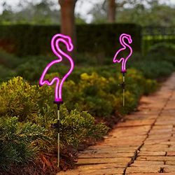 Set of 2] Flamingo Solar Garden Stake Lights, Outdoor Solar Pathway Light$20San Jose, CA