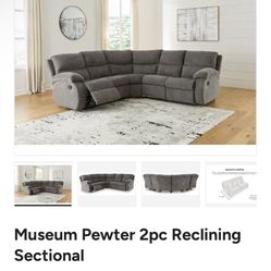 Pewter Reclining Sectional Sofa Couch-Like new$799San Jose, CA