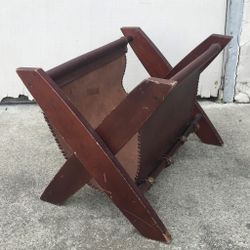 Vintage Warm Brown Leather Magazine Newspaper Rack Holder Wood Frame Folding$15Newark, CA