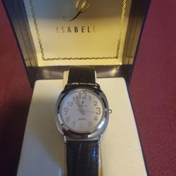 Isabelle Watch Black Leather Buckle Band Silver Toned Oval Shaped White Face$30San Jose, CA