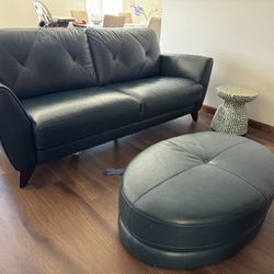 🛋️ Dark Blue Leather Sofa Set – Loveseat, Couch, & Ottoman – Great Condition!$2,500Daly City, CA