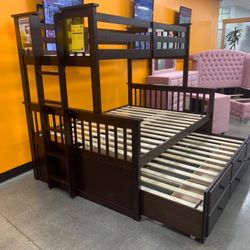 Expresso Triple Bed. , Twin/ Full / Twin Wooden Bunkbed With 3 Nice Mattresses Included 👈🏼 $1,225San Jose, CA