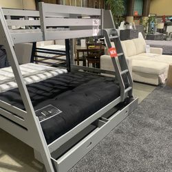 Lettner Light Gray Twin Full Bunk Bed with Large Storage Drawer Finance and Delivery Available $809Milpitas, CA