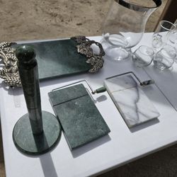 Vintage Godinger-Style Green Marble Kitchen Set - Tray, Slicer, & Paper Towel Holder$125Vista, CA