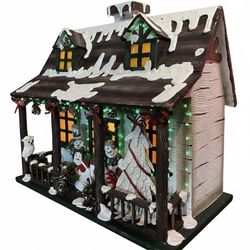 Awesome Rare LARGE WOODEN CHRISTMAS HOUSE 15"X13" inches. Fiber Optic Color Changing Lighting!$100Corona, CA