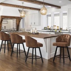 Counter Height Bar Stools Set of 4, 26" Swivel Faux Leather Upholstered Bar Stools with Backs and Me$200Murrieta, CA