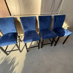 4 Counter Height Blue Velvet Barstool Set$180Murrieta, CA