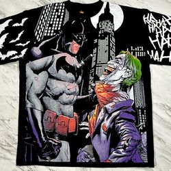 Vintage Style Batman Vs Joker Modern AOP Black T-shirt Size 2XL Comics #11P$100Corona, CA